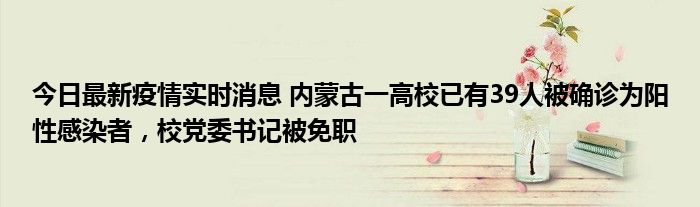 您的位置:首页 >动态频道 > 聚焦疫情 > 今日最新疫情实时消息 内蒙古一高校已有39人被确诊为阳性感染者,校党委书记被免职 2022-10-13 17:38:07 • 来源: 导读 免责声明:本文由用户上传,如有侵权请联系删除! 上一篇:今日最新疫情实时消息 重庆10月12日新增本土确诊病例13例、本土无症状17例 下一篇:今日最新疫情实时消息 2022年10月12日0时至24时山东省无新增本土确诊病例,新增本土无症状感染者25例