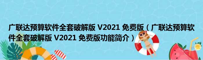 广联达预算软件全套破解版 V2021 免费版(广联达预算软件全套破解版 V2021 免费版功能简介)