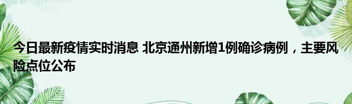 今日最新疫情实时消息 北京通州新增1例确诊病例,主要风险点位公布