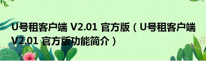 U号租客户端 V2.01 官方版(U号租客户端 V2.01 官方版功能简介)