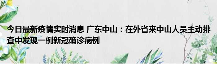 今日最新疫情实时消息 广东中山:在外省来中山人员主动排查中发现一例新冠确诊病例