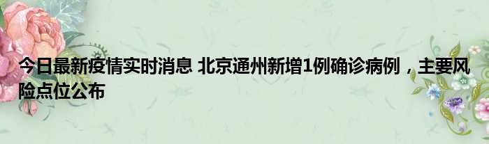 今日最新疫情实时消息 北京通州新增1例确诊病例,主要风险点位公布