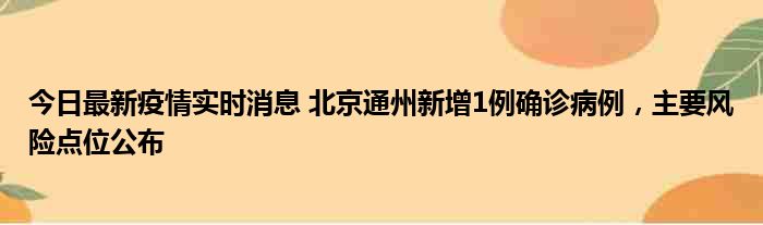 今日最新疫情实时消息 北京通州新增1例确诊病例,主要风险点位公布