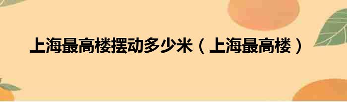 大家好,小庞来为大家解答以上问题,上海最高楼摆动多少米,上海最高楼很多人还不知道,现在让我们一起来看看吧!