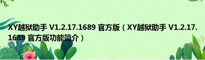 导读 大家好,关于XY越狱助手 V1 2 17 1689 官方版,XY越狱助手 V1 2 17 1689 官方版功能简介这个很多人还不知道,小勒来为大家解答以上的问题