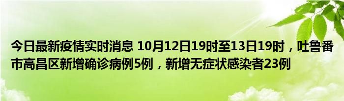 今日最新疫情实时消息 10月12日19时至13日19时,吐鲁番市高昌区新增确诊病例5例,新增无症状感染者23例
