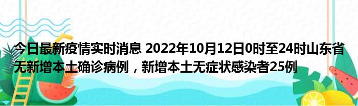 您的位置:首页 >动态频道 > 聚焦疫情 > 今日最新疫情实时消息 2022年10月12日0时至24时山东省无新增本土确诊病例,新增本土无症状感染者25例 2022-10-14 02:30:08 • 来源: 导读 免责声明:本文由用户上传,如有侵权请联系删除! 上一篇:今日最新疫情实时消息 美国累计确诊新冠肺炎病例超9682万例 下一篇:今日最新疫情实时消息 10月13日0—21时,新疆乌鲁木齐新增本土确诊病例13例、本土无症状感染者140例