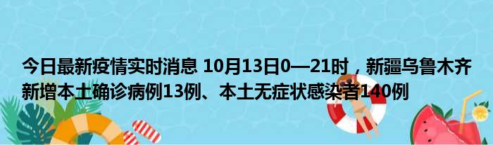 今日最新疫情实时消息 10月13日0—21时,新疆乌鲁木齐新增本土确诊病例13例、本土无症状感染者140例