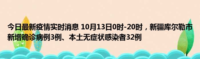 今日最新疫情实时消息 10月13日0时-20时,新疆库尔勒市新增确诊病例3例、本土无症状感染者32例