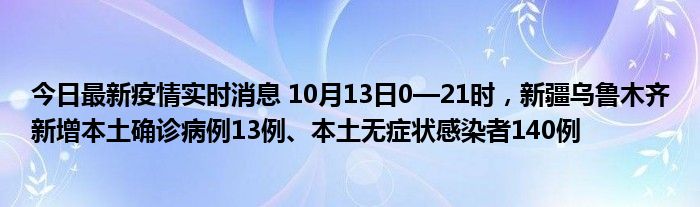 今日最新疫情实时消息 10月13日0—21时,新疆乌鲁木齐新增本土确诊病例13例、本土无症状感染者140例