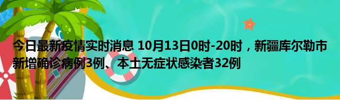今日最新疫情实时消息 10月13日0时-20时,新疆库尔勒市新增确诊病例3例、本土无症状感染者32例