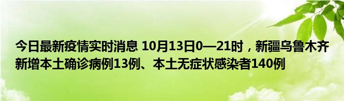 今日最新疫情实时消息 10月13日0—21时,新疆乌鲁木齐新增本土确诊病例13例、本土无症状感染者140例