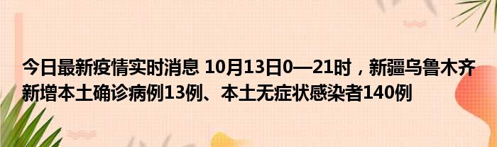 今日最新疫情实时消息 10月13日0—21时,新疆乌鲁木齐新增本土确诊病例13例、本土无症状感染者140例
