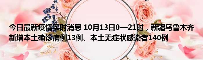 今日最新疫情实时消息 10月13日0—21时,新疆乌鲁木齐新增本土确诊病例13例、本土无症状感染者140例