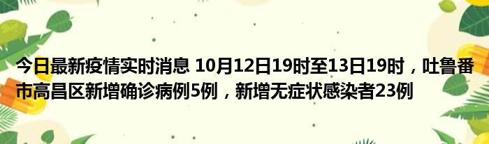 今日最新疫情实时消息 10月12日19时至13日19时,吐鲁番市高昌区新增确诊病例5例,新增无症状感染者23例
