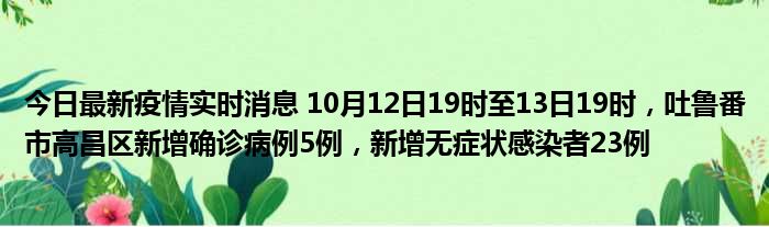 今日最新疫情实时消息 10月12日19时至13日19时,吐鲁番市高昌区新增确诊病例5例,新增无症状感染者23例