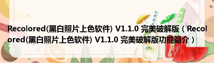 Recolored(黑白照片上色软件) V1.1.0 完美破解版(Recolored(黑白照片上色软件) V1.1.0 完美破解版功能简介)