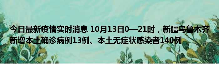 今日最新疫情实时消息 10月13日0—21时,新疆乌鲁木齐新增本土确诊病例13例、本土无症状感染者140例