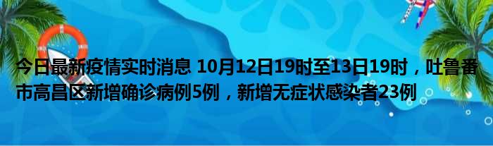 今日最新疫情实时消息 10月12日19时至13日19时,吐鲁番市高昌区新增确诊病例5例,新增无症状感染者23例