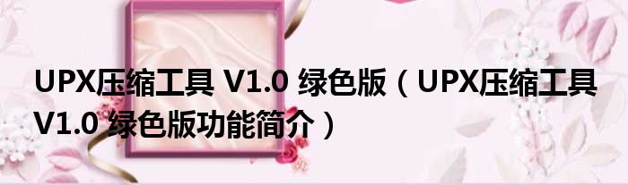 UPX压缩工具 V1.0 绿色版(UPX压缩工具 V1.0 绿色版功能简介)