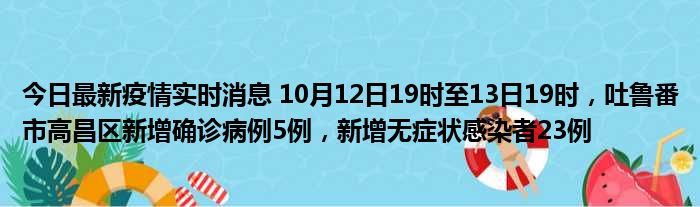 今日最新疫情实时消息 10月12日19时至13日19时,吐鲁番市高昌区新增确诊病例5例,新增无症状感染者23例