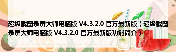 导读 大家好,关于超级截图录屏大师电脑版 V4 3 2 0 官方最新版,超级截图录屏大师电脑版 V4 3 2 0 官方最新版功能简介这个很多人还不知道,小