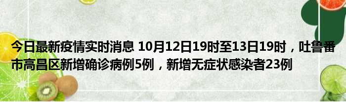 今日最新疫情实时消息 10月12日19时至13日19时,吐鲁番市高昌区新增确诊病例5例,新增无症状感染者23例