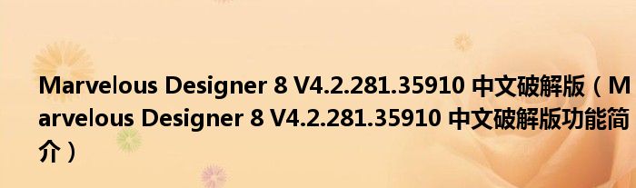 Marvelous Designer 8 V4.2.281.35910 中文破解版(Marvelous Designer 8 V4.2.281.35910 中文破解版功能简介)