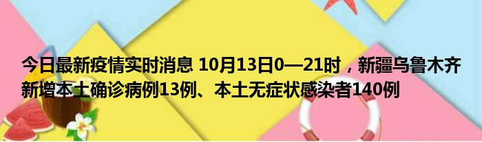 今日最新疫情实时消息 10月13日0—21时,新疆乌鲁木齐新增本土确诊病例13例、本土无症状感染者140例