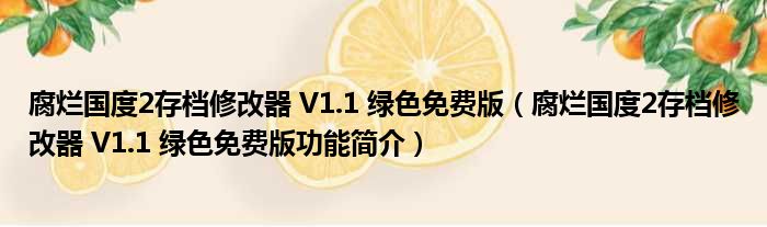 腐烂国度2存档修改器 V1.1 绿色免费版(腐烂国度2存档修改器 V1.1 绿色免费版功能简介)
