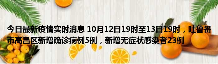 今日最新疫情实时消息 10月12日19时至13日19时,吐鲁番市高昌区新增确诊病例5例,新增无症状感染者23例