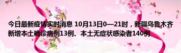 今日最新疫情实时消息 10月13日0—21时,新疆乌鲁木齐新增本土确诊病例13例、本土无症状感染者140例