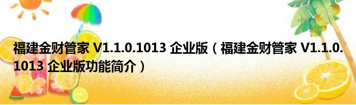 福建金财管家 V1.1.0.1013 企业版(福建金财管家 V1.1.0.1013 企业版功能简介)