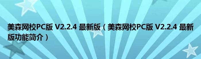 导读 大家好,关于美森网校PC版 V2 2 4 最新版,美森网校PC版 V2 2 4 最新版功能简介这个很多人还不知道,小勒来为大家解答以上的问题,现在让