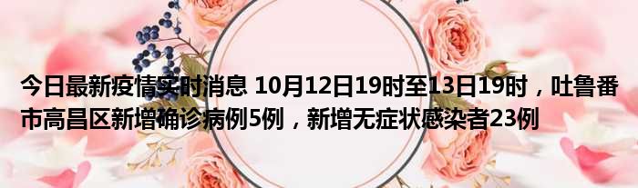 今日最新疫情实时消息 10月12日19时至13日19时,吐鲁番市高昌区新增确诊病例5例,新增无症状感染者23例