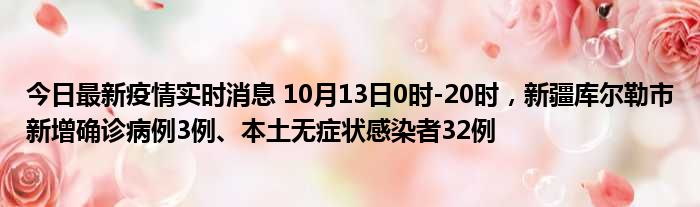今日最新疫情实时消息 10月13日0时-20时,新疆库尔勒市新增确诊病例3例、本土无症状感染者32例