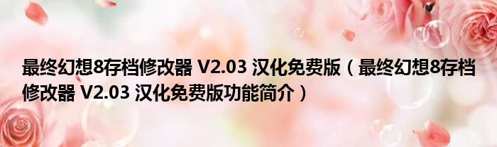 最终幻想8存档修改器 V2.03 汉化免费版(最终幻想8存档修改器 V2.03 汉化免费版功能简介)