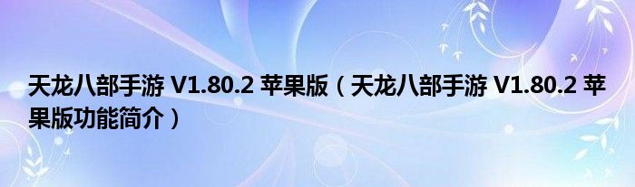 天龙八部手游 V1.80.2 苹果版(天龙八部手游 V1.80.2 苹果版功能简介)