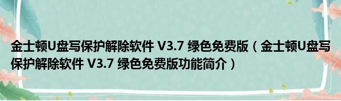 金士顿U盘写保护解除软件 V3.7 绿色免费版(金士顿U盘写保护解除软件 V3.7 绿色免费版功能简介)