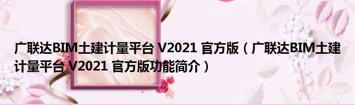 广联达BIM土建计量平台 V2021 官方版(广联达BIM土建计量平台 V2021 官方版功能简介)