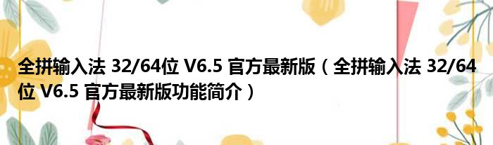 全拼输入法 32/64位 V6.5 官方最新版(全拼输入法 32/64位 V6.5 官方最新版功能简介)