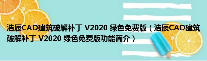 导读 大家好,关于浩辰CAD建筑破解补丁 V2020 绿色免费版,浩辰CAD建筑破解补丁 V2020 绿色免费版功能简介这个很多人还不知道,小勒来为大家解