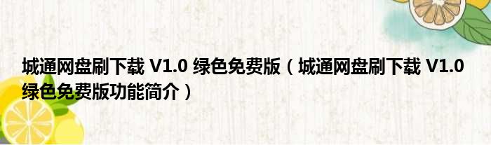 导读 大家好,关于城通网盘刷下载 V1 0 绿色免费版,城通网盘刷下载 V1 0 绿色免费版功能简介这个很多人还不知道,小勒来为大家解答以上的问题