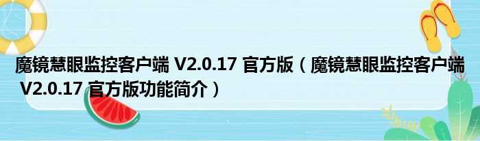 魔镜慧眼监控客户端 V2.0.17 官方版(魔镜慧眼监控客户端 V2.0.17 官方版功能简介)