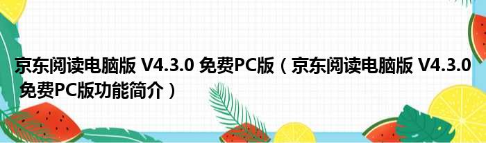 京东阅读电脑版 V4.3.0 免费PC版(京东阅读电脑版 V4.3.0 免费PC版功能简介)