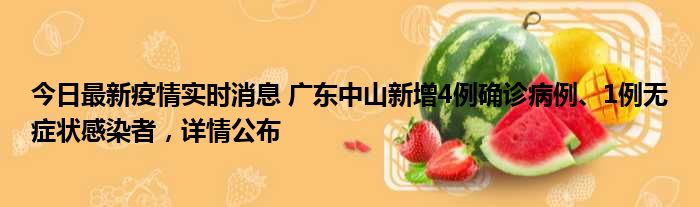 今日最新疫情实时消息 广东中山新增4例确诊病例、1例无症状感染者,详情公布