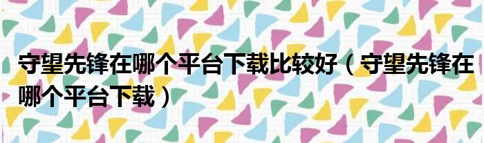 导读 大家好,今天小六子来为大家解答以下的问题,关于守望先锋在哪个平台下载比较好,守望先锋在哪个平台下载这个很多人还不知道,现在让我们一