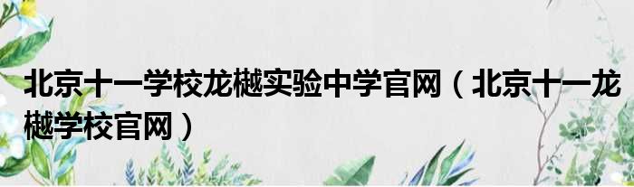 北京十一学校龙樾实验中学官网(北京十一龙樾学校官网)
