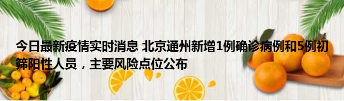今日最新疫情实时消息 北京通州新增1例确诊病例和5例初筛阳性人员,主要风险点位公布