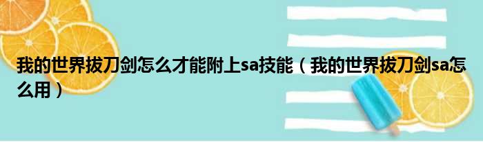我的世界拔刀剑怎么才能附上sa技能(我的世界拔刀剑sa怎么用)